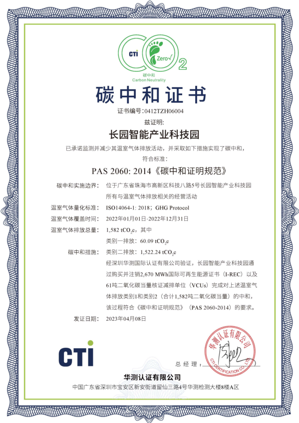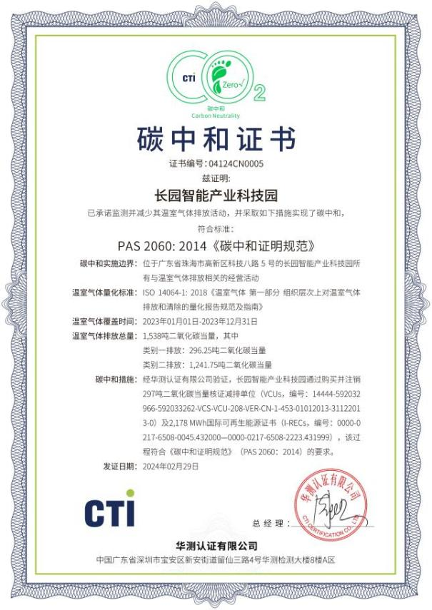 近日,710公海寰宇科技集团位于珠海高新区的“710公海寰宇智能产业科技园”完成了2023年度运营层面的碳中和认证工作,这一重要成就标志着该园区已连续两年实现碳中和目标。